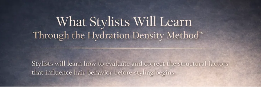The Hydration Density Method™ is a structured approach to correcting hydration density. calibrating elasticity, and reinforcing the cuticular barrier for stylist who want consistent, controlled outcomes.